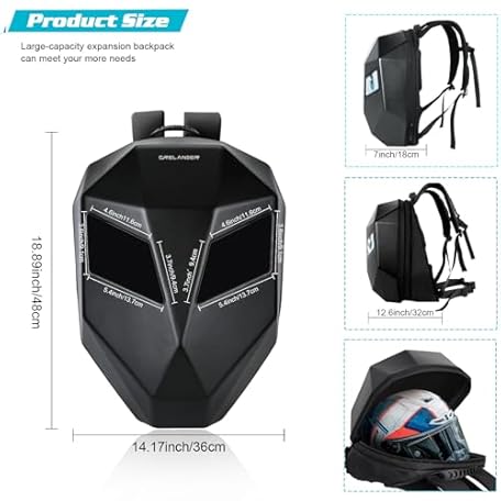 Thông tin sản phẩm Crelander LED Knight Backpack, 19inch App Control Motorcycle Backpack with DIY Programmable Full Color Screen Waterproof Large Capacity Hard Shell Helmet Bag DIY Pixel Art Animation Laptop Daypack