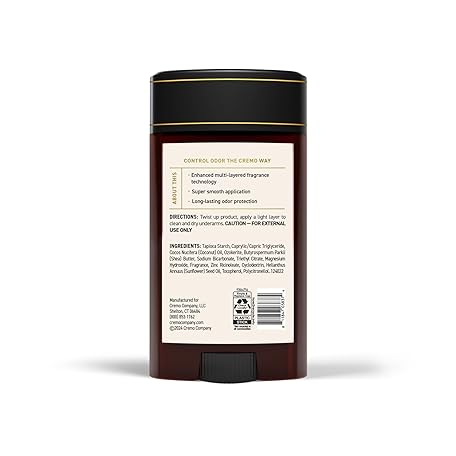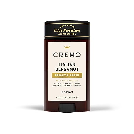 • Cremo Italian Bergamot Aluminum Free Deodorant for Men, 48-hour Long Lasting Odor Protection, 2.65oz