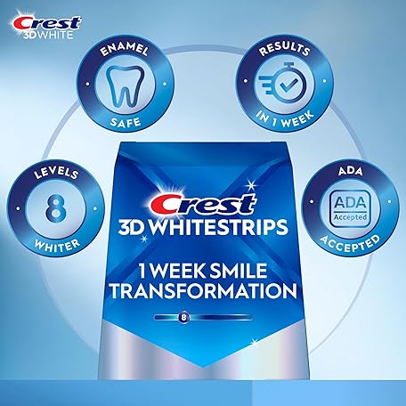 Thương hiệu Crest là cái tên nổi tiếng được rất nhiều khách hàng trên thế giới chọn lựa. Với kiểu dáng đẹp mắt, sang trọng, sản phẩm Crest 3D Whitestrips, 1 Week Smile Transformation, Whitestrips 3D White, Teeth Whitening Strip Kit, 14 Treatments (Each with 1 Upper/1 Lower), 28 Strips là sự lựa chọn hoàn hảo nếu bạn đang tìm mua một món cho riêng mình.