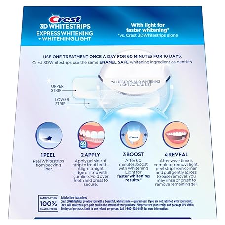 Thông tin sản phẩm Crest 3D Whitestrips Express Whitening + LED Light – Teeth Whitening Kit, 1 Light + 10 Treatments, Each with 1 Upper/1Lower, 20 Strips – Crest 3DWhite Teeth Whitening Strips