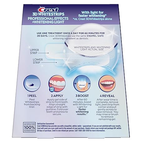 Thông tin sản phẩm Crest 3D Whitestrips Professional Effects + LED Light – Teeth Whitening Kit, 1 Light + 20 Treatments, Each with 1 Upper/1Lower, 40 Strips – Crest 3DWhite Teeth Whitening Strips