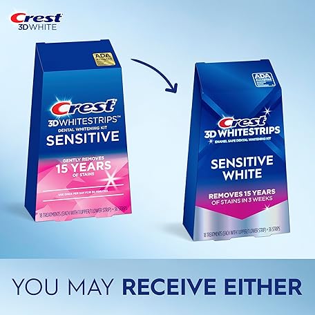 Thông tin sản phẩm Crest 3D Whitestrips Sensitive At-Home Teeth Whitening Kit, 18 Treatments, Gently Removes 15 Years of Stains, Crest Whitestrips, Teeth Whitening Kit