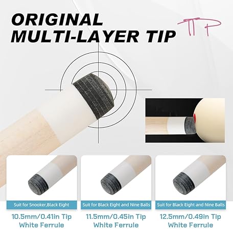 • CRICAL-Fury AE-NT Series Pool Stick with 1X1 Hard Case,58" Maple Professional Billiard Cue Stick (10.5/11.5/12.5mm Tip) Pool Cue Set