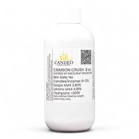 Thông tin sản phẩm Crimson Crush Fragrance Oil | Inspired by B.accarat R.ouge 540 (8oz Bottle) | Candle Making, Room Sprays, Car Fresheners, Wax Melts | Candeo Candle Supply | Phthalate Free & Prop 65 Compliant
