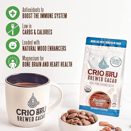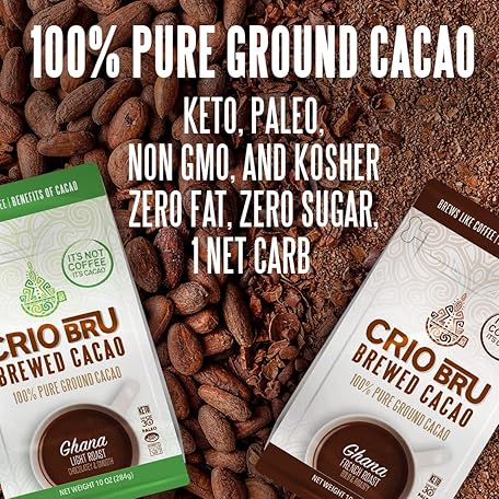 Thông tin sản phẩm Crio Bru Ghana Light Roast - Coffee Alternative Natural Healthy Drink | 100% Pure Ground Cacao Beans | 99.99% Caffeine Free, Keto, Low Carb, Paleo, Brew And Enjoy Hot or Iced (10 Ounce (Pack of 1))