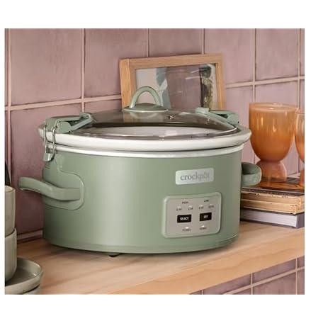• Crock-Pot Locking Lid 6qt Cook and Carry Programmable Slow Cooker Moonshine Green (Green)