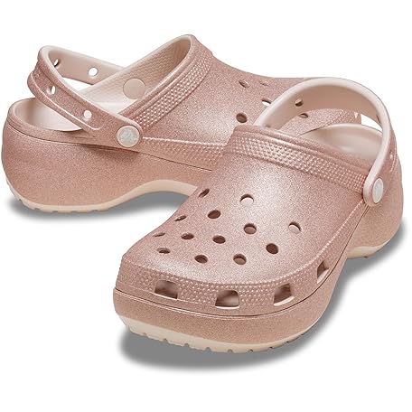 Crocs Women's Classic Platform Glitter Clog, Quartz, 9