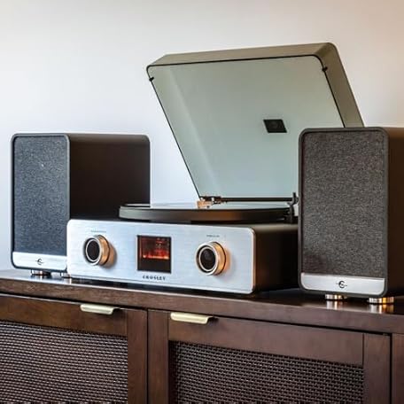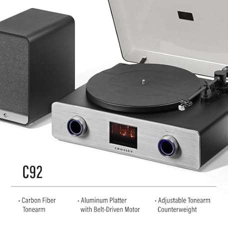 Thông tin sản phẩm Crosley C92A-BK Belt-Drive Bluetooth Record Player Turntable with Speakers, Vacuum Tube Preamp, and Moving Magnet Audio-Technica Cartridge, Black