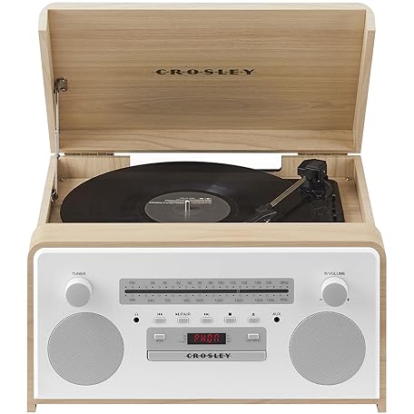 Crosley CR7024A-NA Carter 7-in-1 Bluetooth Vinyl Record Player, 3-Speed Turntable, CD Players, AM/FM Radio, Natural