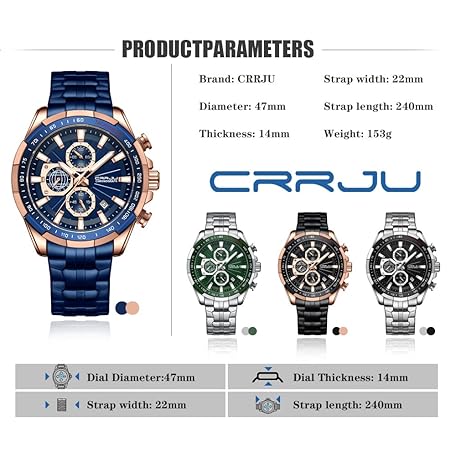 Sản phẩm CRRJU Men Wristwatches Fashion Luxury Stainless Steel Watches for Men Business Auto Date Glow Analog Quartz Wristwatches đang được bán với giá ưu đãi là $43.5891 tại nước Mỹ.