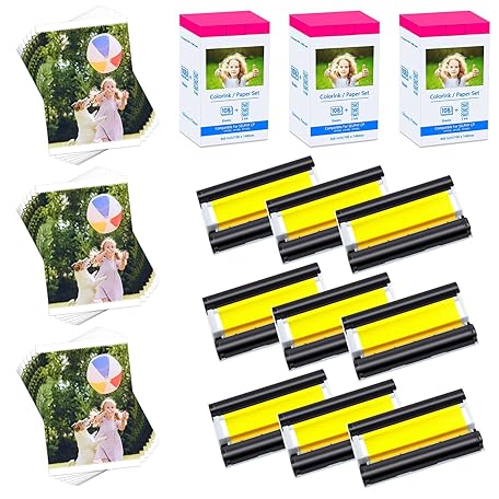 Cruxer Compatible for Canon Selphy CP1500 CP1300 Ink and Paper KP-108in KP108in 4x6 Photo Paper for Cannon Selphy CP CP910 CP780 CP760 CP1200 CP1000 Printer 108 Sheets + 3 Ink Cartridges, 3 Set