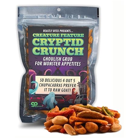 • Cryptid Crunch Gourmet Spicy Trail Mix for Men Horror Gag Gift Scary Movie Lovers Werewolf Bigfoot Mothman Monsters Halloween Snack Basket