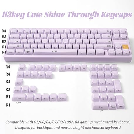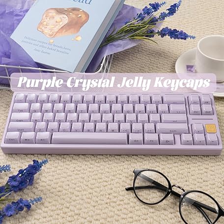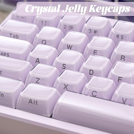 Thông tin sản phẩm Crystal Jelly Keycaps, Purple Side Printed Keycap, Custom Translucent Keycaps 113 Keys OEM Profile Key Cap, Cute Shine Through Keyboard Caps for 61/68/84/87/98/100 Cherry MX Keyboard Mechanical