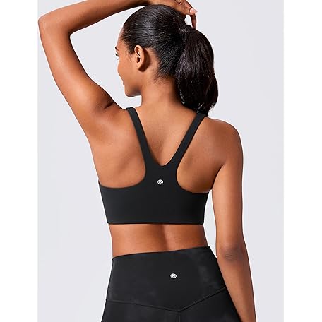 CRZ YOGA Butterlift Double Lined Square Neck Sports Bras for Women - Wireless V-Shaped Racerback Workout Yoga Top Non Padded