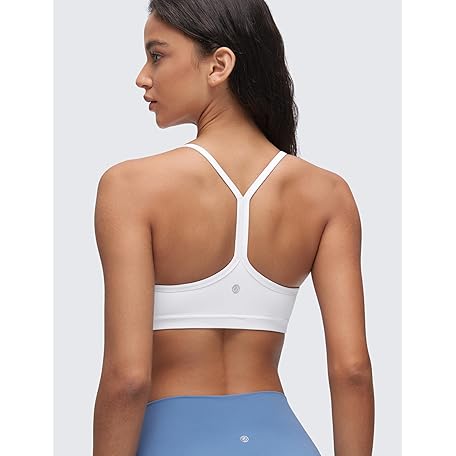 CRZ YOGA Butterluxe Ruched Sports Bras for Women - V Neck Spaghetti Thin Strap Y Back Wireless Padded Yoga Crop Top