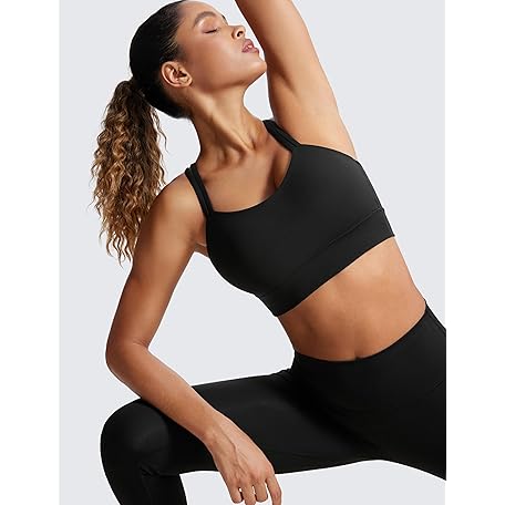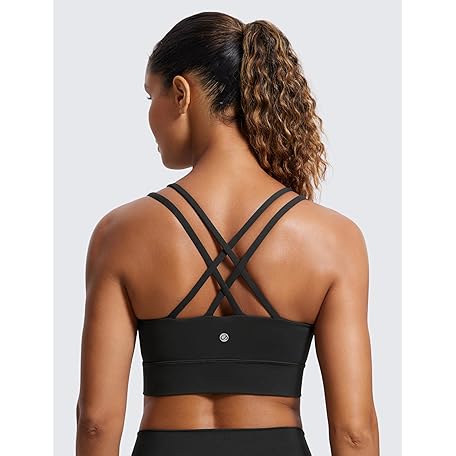• CRZ YOGA Softness Mold Butterluxe Strappy Longline Sports Bras for Women - Double Spaghetti Strap Workout Yoga Crop Top
