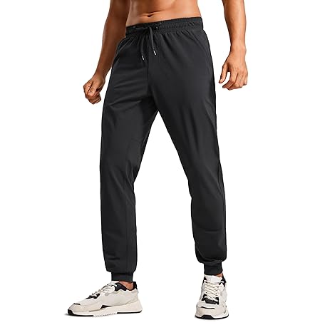 CRZ YOGA Stretch Workout Joggers for Men 29"/31" - Lightweight Water Resistant Outdoor Workout Pants with Zip Pockets