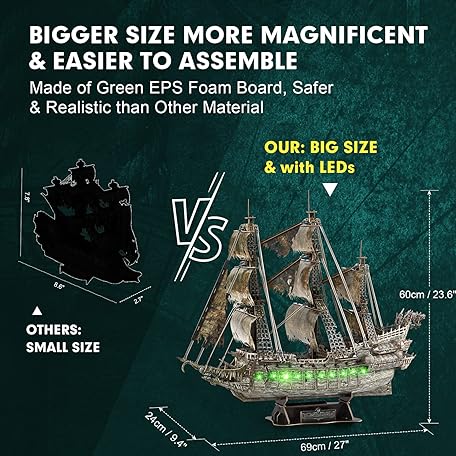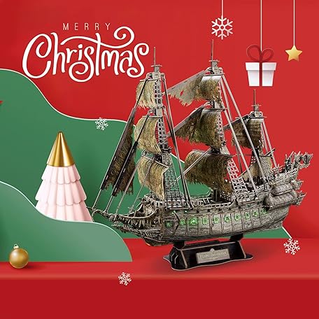 Thông tin sản phẩm CubicFun 3D Puzzles for Adults Green LED Flying Dutchman, 360 Pieces Pirate Ship Arts & Crafts for Adults Gifts for Men Women Model Kit, Lighting Ghost Ship Christmas Men Gifts