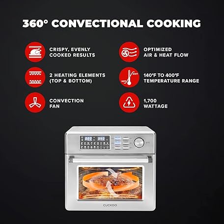 Thương hiệu CUCKOO là cái tên nổi tiếng được rất nhiều khách hàng trên thế giới chọn lựa. Với kiểu dáng đẹp mắt, sang trọng, sản phẩm CUCKOO Air Oven | 18 Preset Modes, 360 Convectional Cooking, Premium Interior & Exterior, All accessories included Black/Stainless Steel CAFO-A2601S là sự lựa chọn hoàn hảo nếu bạn đang tìm mua một món cho riêng mình.