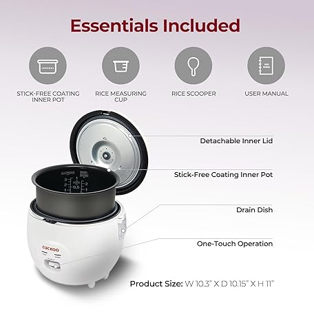 Thông tin sản phẩm CUCKOO Basic Rice Cooker 6-Cup Uncooked / 12-Cup Cooked, Versatile Rice Maker with Non-Stick Inner Pot, Easy to Use, Auto Keep Warm, White/Purple (CR-0671V)