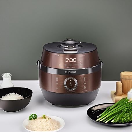 CUCKOO CRP-JHR0609F 6-Cup (Uncooked) / 12-Cup (Cooked) Induction Heating Pressure Rice Cooker with Nonstick Inner Pot, 16 Menu Options, Fuzzy Logic Tech, 3 Voice Guide, Auto Clean (Copper/Black)