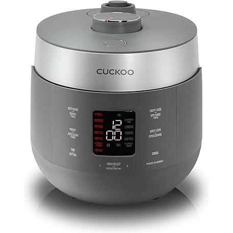 CUCKOO CRP-ST1009F Rice Cooker and Warmer with 20 Cups (Cooked) Double Pressure Rice Cooker and Warmer with Non-Stick Coating, 16 Menu Options, 3 Voice Guides, Automatic Cleaning (Grey)
