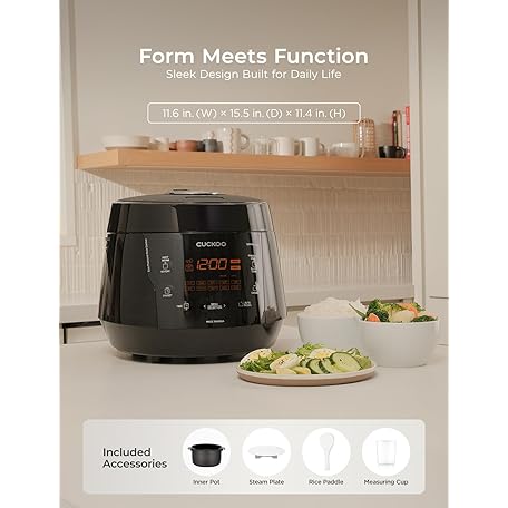 Thương hiệu CUCKOO là cái tên nổi tiếng được rất nhiều khách hàng trên thế giới chọn lựa. Với kiểu dáng đẹp mắt, sang trọng, sản phẩm CUCKOO High Pressure Rice Cooker 10-Cup Uncooked / 20-Cup Cooked with Nonstick Inner Pot, Large Rice Maker with 13 Menu Options and Steam Plate, Fuzzy Logic Tech, Auto Clean, Black (CRP-PK1001S) là sự lựa chọn hoàn hảo nếu bạn đang tìm mua một món cho riêng mình.