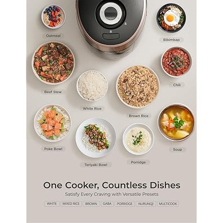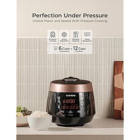 Thông tin sản phẩm CUCKOO High Pressure Rice Cooker 6-Cup Uncooked / 12-Cup Cooked with Nonstick Inner Pot, Versatile Rice Maker with 12 Menu Options and Steam Plate, Fuzzy Logic Tech, Voice Guide, Black (CRP-P0609S)