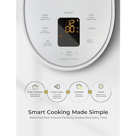 Thông tin sản phẩm CUCKOO Micom Rice Cooker 3-Cup Uncooked / 6-Cup Cooked with Nonstick Inner Pot, Small Rice Maker with 8 Menu Options, Fuzzy Logic Technology, Auto Clean, Quick Rice Mode, White (CR-0375FW)
