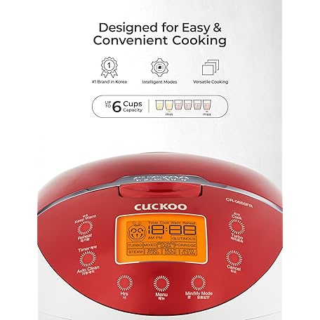 Thương hiệu CUCKOO là cái tên nổi tiếng được rất nhiều khách hàng trên thế giới chọn lựa. Với kiểu dáng đẹp mắt, sang trọng, sản phẩm CUCKOO Micom Rice Cooker 6 Cup Uncooked / 12 Cup Cooked, Fuzzy Logic Rice Maker with Delay Timer & Keep Warm Setting, Versatile Food Steamer for Cooking, Non-Stick Inner Pot, Red (CR-0655F) là sự lựa chọn hoàn hảo nếu bạn đang tìm mua một món cho riêng mình.