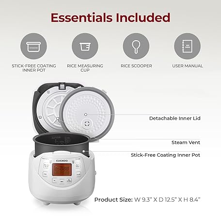 Thông tin sản phẩm CUCKOO Micom Rice Cooker 6 Cup Uncooked / 12 Cup Cooked, Korean Fuzzy Logic Rice Cooker with Delay Timer & Keep Warm Setting, Versatile Food Steamer with Non-Stick Inner Pot, White (CR-0633F)