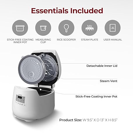 Thông tin sản phẩm CUCKOO Micom Rice Cooker 6 Cup Uncooked / 12 Cup Cooked, Korean Fuzzy Logic Rice Cooker with Steam Tray, Versatile Food Steamer & Warmer with Non-Stick Inner Pot, Rice Maker, White (CR-0641F)