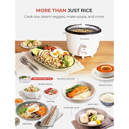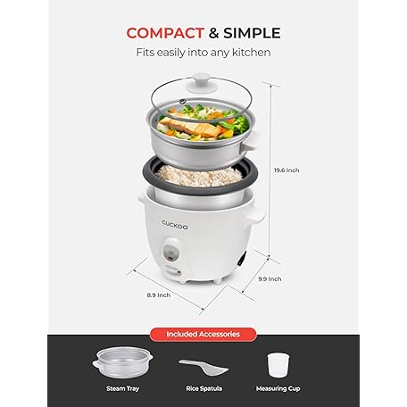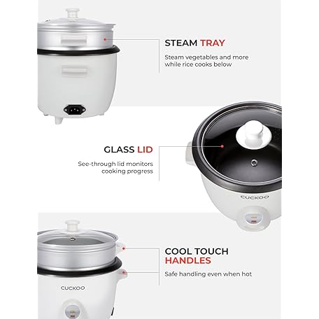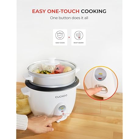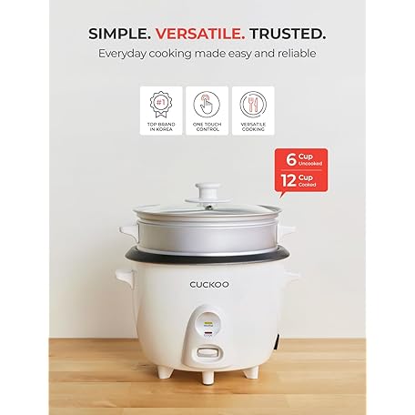 CUCKOO One Touch Rice Cooker 12-Cup Cooked, Small Rice Cooker & Warmer with Steamer Tray, Versatile Grain Cooker, Soup Maker, Auto Keep Warm, 6-Cup Uncooked, White (CR-0601C)