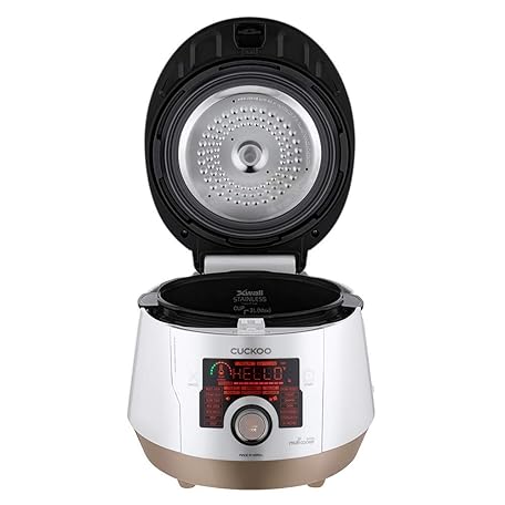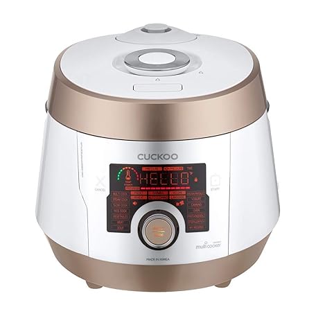 Thông tin sản phẩm CUCKOO Premium Multi-Pressure Cooker 14 Menu Options: White, Fry, Slow Cook, Porridge, & More, User-Friendly LED Display, Fuzzy Logic Tech, 20 Cup / 5 Qt. (Uncooked) CMC-ASB501F Gold/White