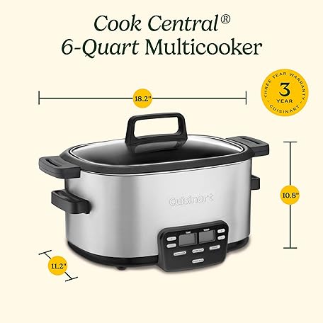 Thông tin sản phẩm Cuisinart 3-In-1 Cook Central 6-Quart Multi-Cooker: Slow Cooker, Brown/Saute, Steamer, MSC-600 NAS, Silver