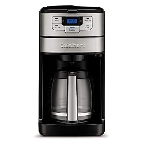 Thông tin sản phẩm Cuisinart Automatic Grind & Brew 12-Cup Coffee Maker with Blade Grinder, Programmable Coffee Machine Glass Carafe with 1-4 Cup Setting, Brew Pause, Grind-Off Option, DGB-400NAS, Black/Stainless Steel