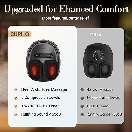 • CuPiLo Foot Massager with Heat, Shiatsu Feet Massager for Plantar Fasciitis Relief, Adjustable Kneading and Compression Foot Massage Machine for Neuropathy Pain, Fits Up to 13"