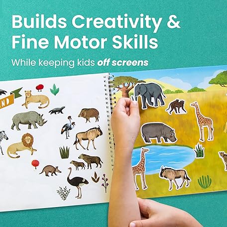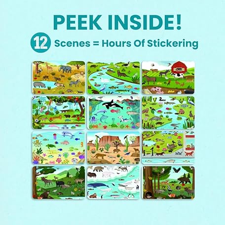 Thông tin sản phẩm Cupkin Animal Sticker Book Activity for Kids, Toddler Airplane Travel Essentials, 500+ Habitat Stickers for Kids + 12 Scenes + 12 Coloring Book Pages, Animal Lover Gift, Childrens Crafts for Ages 2-8