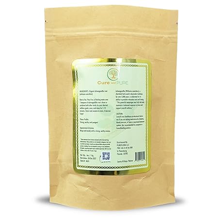Cure wid Pure Certified Organic Ashwagandha Root Tea | Cut & Sifted 4oz Non-GMO Non-Irradiated Ashwagandha Tea for Women & Men Adaptogenic Wellness | Withania Somnifera for Herbal Infusion & Capsules