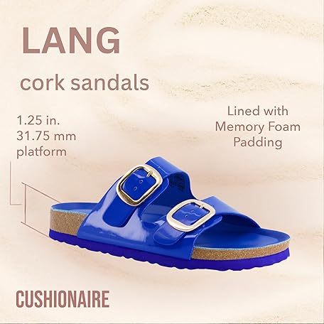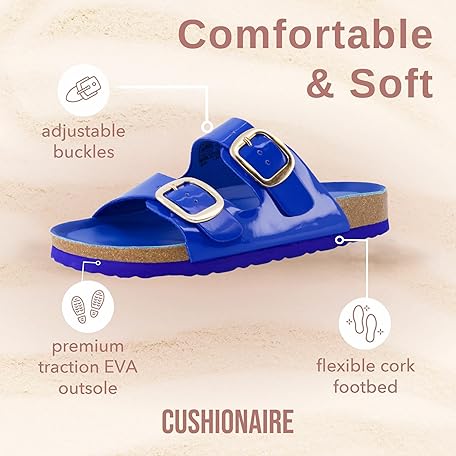 Sản phẩm CUSHIONAIRE Lang Slip On Cork Footbed Womens Sandals – Comfortable Slides with Adjustable Buckle Flat Sandals for Women đang được bán với giá ưu đãi là $37.7031 tại nước Mỹ.