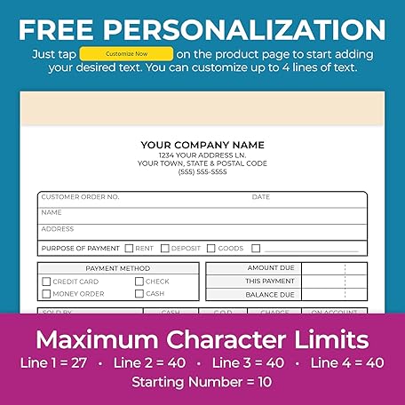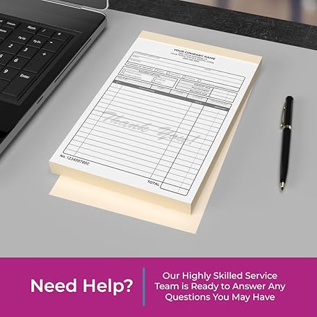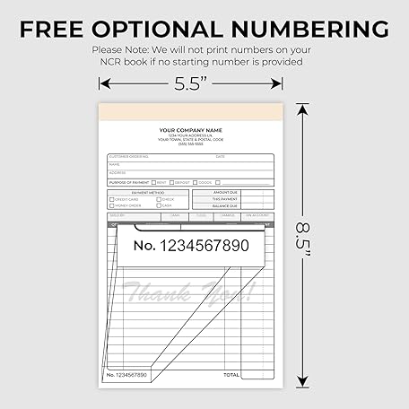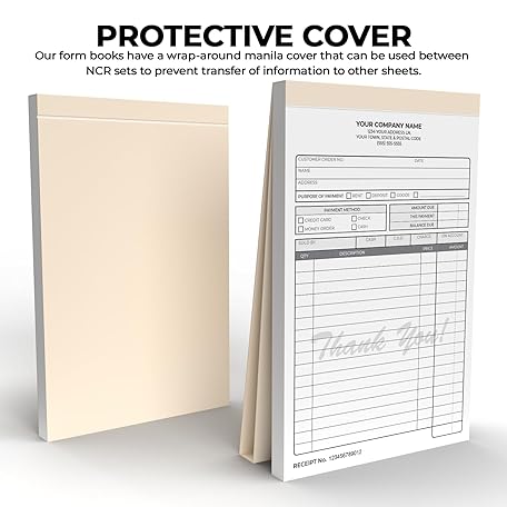 Custom 5.5" x 8.5" Carbonless NCR Books in 2-Part Duplicate Invoices, Receipts, Work Orders, Sales Orders, Purchase Orders, Estimates, Quote Forms with Your Company/Business Name (100 Sets)