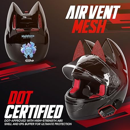 • Custom Kitty Cat Ear Automotive Motorcycle Biker Helmet with Bluetooth | for Moped | Bike | Vespa | Scooter | ATV | Quad | Dirtbike | DOT FMVSS218 Approved and Certified