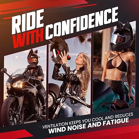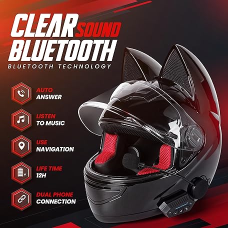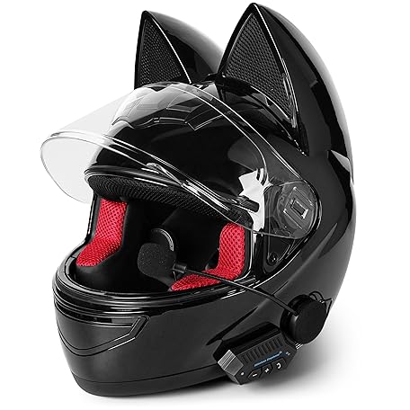 Custom Kitty Cat Ear Automotive Motorcycle Biker Helmet with Bluetooth | for Moped | Bike | Vespa | Scooter | ATV | Quad | Dirtbike | DOT FMVSS218 Approved and Certified