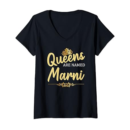 Custom Women Name Girl Mom Wife Christmas Presents Womens Queens Are Named MARNI Personalized Funny Birthday Gift V-Neck T-Shirt