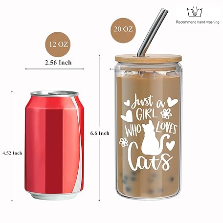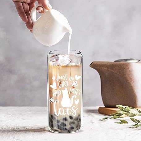 Thông tin sản phẩm Cute Cat Gifts for Lovers & Moms, Unique Funny Themed Coffee Cups, 20oz Glass, BFF & Coworker Gift, Cat Lady Merch