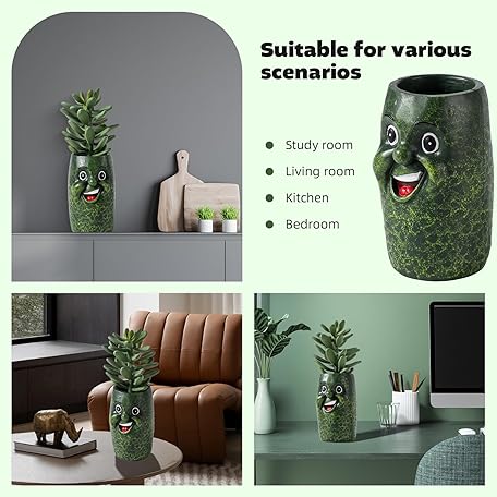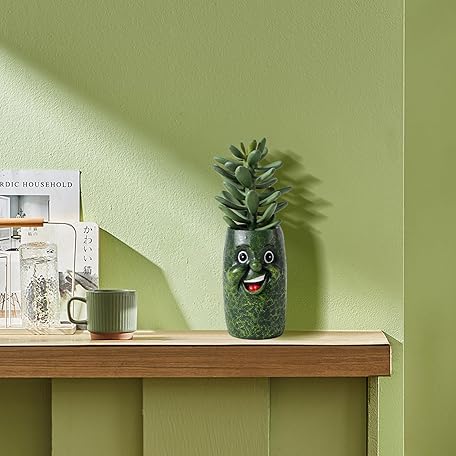 Cute Cucumber Shaped Planter Fun Resin Plant Pots Indoors with Drainage Hole for Houseplants Succulents Small Plant, Funny Gift for Christmas/Birthday