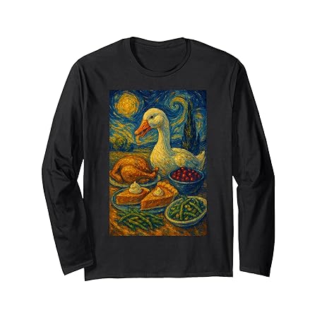 Cute Thanksgiving Favorite Holiday Art Lover Cute Goose Starry Night Van Gogh for Thanksgiving Food Lover Long Sleeve T-Shirt