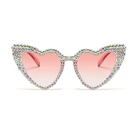• Cute Women Heart Sunglasses Fashion Shiny Bling Diamond Sunglasses Polygonal Pink Rhinestone Sunglasses UV Protection