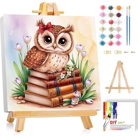 cviokrdu Owl Paint by Numbers Kit for Kids with Frame - Wooden Easel, Animals Paint by Numbers for Kids Ages 4 8 12, Easy Acrylic Oil Painting Kits for Home Wall Decoration 8x8 inch