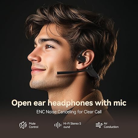 CXK Open Ear Headphones with Mic, Bluetooth Headset with AI Noise Cancellation Microphone Bluetooth 5.3 Air Conduction Headphones Wireless Headset with Mic for Work Call Meeting Driving